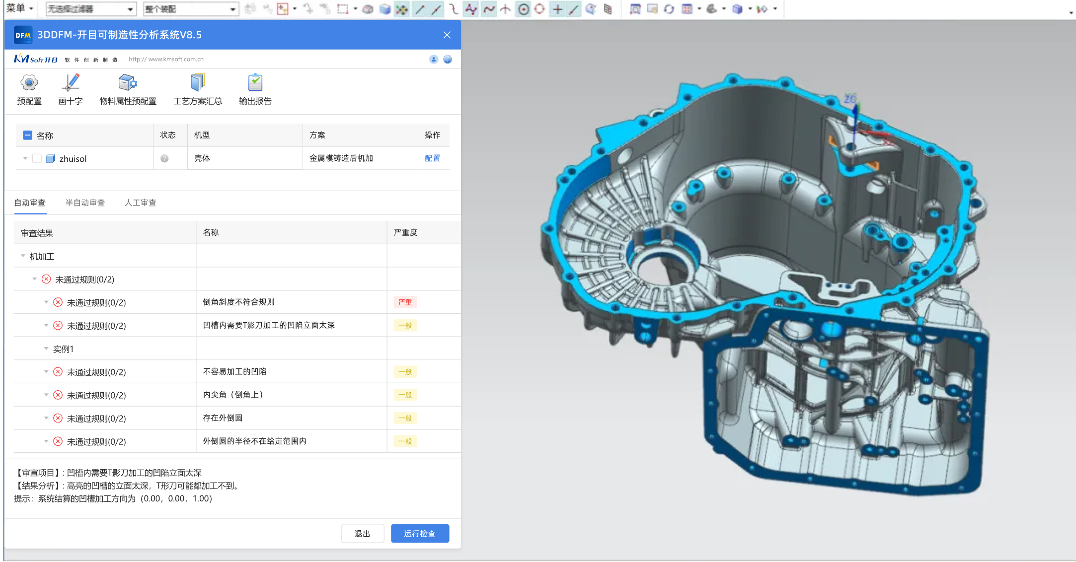 經(jīng)過多年的迭代創(chuàng)新,3DDFM在三維模型解析、加工特征識別、可加工性知識建模與推理,批量模型審查分析、知識規(guī)則擴(kuò)展等技術(shù)上處于國內(nèi)外行業(yè)領(lǐng)先,已具備強(qiáng)大的適應(yīng)復(fù)雜設(shè)計與工藝場景的能力。