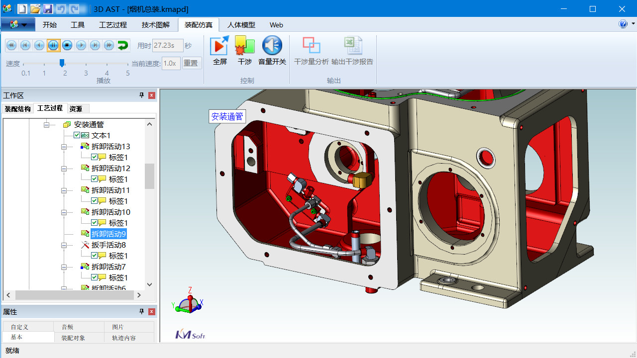 裝配工藝仿真分析能夠?qū)崿F(xiàn)裝配過(guò)程的裝配順序仿真、裝配干涉檢查、產(chǎn)品和制造資源仿真等工作,分析與優(yōu)化裝配順序,檢驗(yàn)工裝、工具使用者的可達(dá)性、裝配空間的開敞性,并基于裝配工藝過(guò)程數(shù)據(jù)自動(dòng)生成裝配工藝指令及可視化裝配工藝文件(視頻文件、MBOM報(bào)表、零組件配套報(bào)表),以指導(dǎo)現(xiàn)場(chǎng)操作人員,實(shí)現(xiàn)可視化裝配。