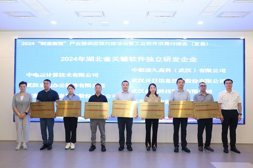 本次對接會是認(rèn)真落實湖北省工業(yè)軟件產(chǎn)業(yè)高質(zhì)量發(fā)展行動方案,促進(jìn)工業(yè)軟件賦能制造業(yè)數(shù)字化轉(zhuǎn)型,深入推進(jìn)新型工業(yè)化的具體舉措。會上,省經(jīng)信廳解讀了《湖北省工業(yè)軟件產(chǎn)業(yè)高質(zhì)量發(fā)展行動方案(2024年-2026年)》及其配套文件,并為2024年湖北省首版次軟件產(chǎn)品暨關(guān)鍵軟件獨立研發(fā)企業(yè)進(jìn)行授牌。