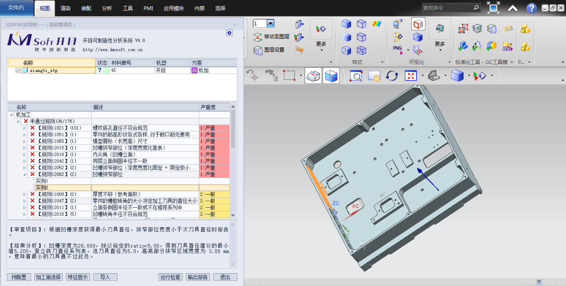 3DDFM基于完全自主核心技術(shù),內(nèi)嵌于三維CAD中,可根據(jù)審查規(guī)則對(duì)產(chǎn)品設(shè)計(jì)模型進(jìn)行檢查和分析,輔助設(shè)計(jì)、工藝、制造工程師在產(chǎn)品設(shè)計(jì)階段檢查設(shè)計(jì)的可制造性,提前發(fā)現(xiàn)并修改設(shè)計(jì)缺陷,減少工藝性評(píng)審時(shí)間以及設(shè)計(jì)返工次數(shù),提高產(chǎn)品質(zhì)量,縮短研制周期。此次線上探討會(huì),專家們將為您全面解讀開(kāi)目可制造性分析系統(tǒng)(3DDFM)的核心功能與產(chǎn)品優(yōu)勢(shì)。