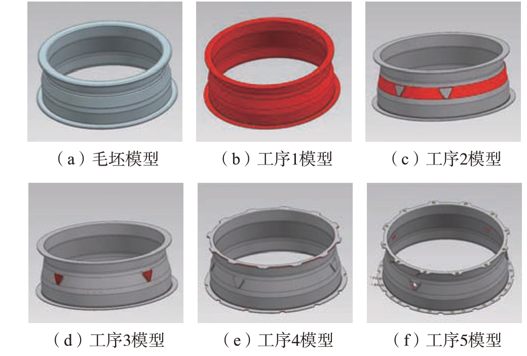 (2)通過工藝推理獲得特征的加工步驟與余量,然后根據(jù)典型機(jī)匣工藝模板確定機(jī)匣零件工藝路線,自動(dòng)構(gòu)建三維工藝模型,典型機(jī)匣零件加工過程如圖12 所示。