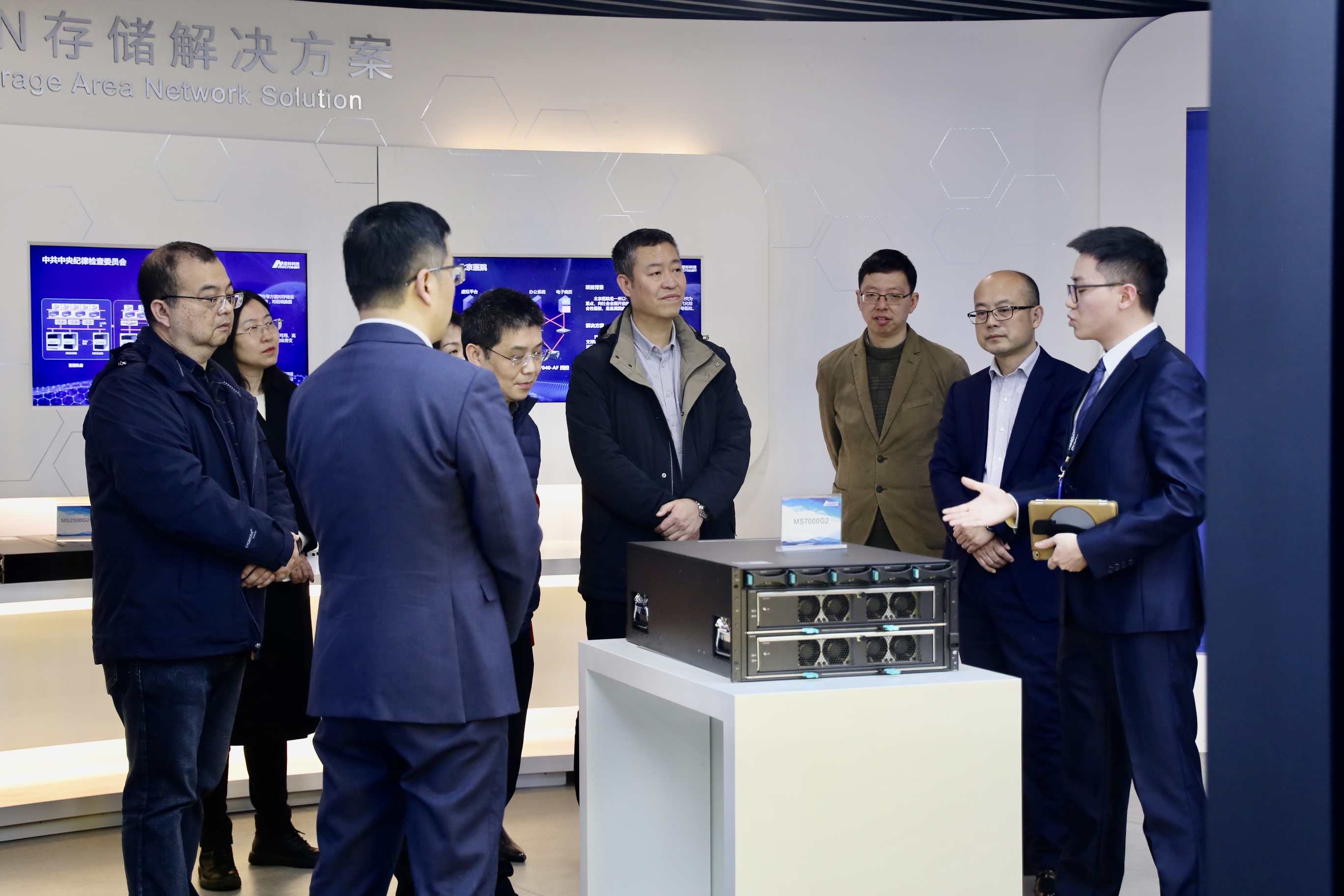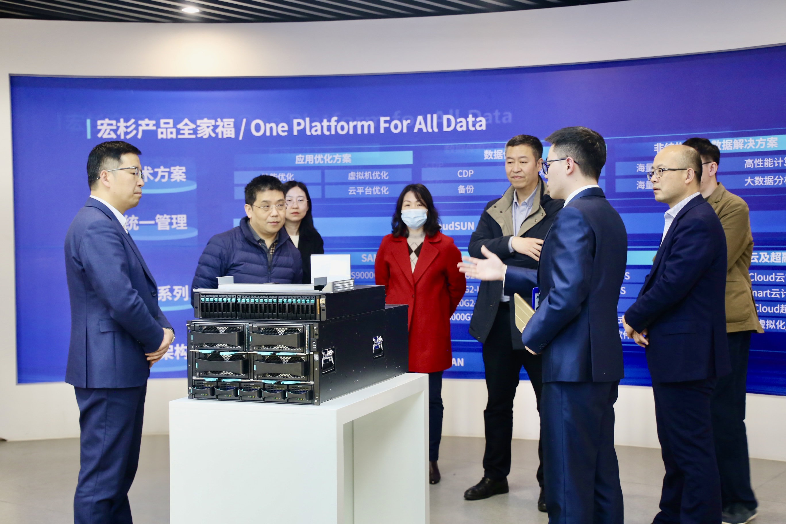 本次參觀交流,宏杉科技相關領導熱情的接待。在交流期間,雙方人員根據(jù)各自負責業(yè)務領域的好的做法、成功經驗和亮點成果進行深度分享。同時,也就后期的雙方進一步緊密合作、互惠共贏方面做了初步的交流、探討、暢想。